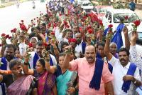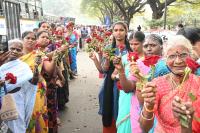 Members of Dalita Sangarsha Samiti participated in the padayatra holding rose flowers on the occasion of Dr. BR Ambedkar 67th death anniversary, in Bengaluru on Wednesday 6th December 2023