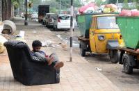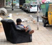 Sofa So Good, a bbmp worker relaxing on sofa on a footpath at Wilson Garden, in Bengaluru on Saturday 9th December 2023
