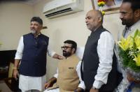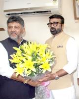 DCM DK Shivakumar greeted MLA NA Harris during his charge taking ceremony as the BDA Chairman, in Bengaluru on Monday 29th January 2024
