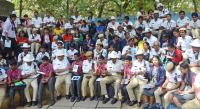 Students with Joint Commissioner (Traffic) M N Anucheth and other traffic police personal during the celebrations of My Bengaluru City Traffic police by CMCA at traffic police park, in Bangalore on Wednesday 31st January 2024