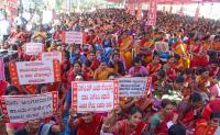 Members of all India Trade Union Congress protest demanding for minimum wages and other demands at Freedom Park, in Bangalore on Thursday 1st February 2024