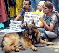 Members of The Cubbon Park Walkers Association protesting against 10 storey building project in Cubbon Park, in Bengaluru on Sunday 11th February 2024
