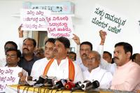 Assembly Opposition leader R Ashoka with BJP State President BY Vijayendra addressing media at Vidhana Soudha, in Bengaluru on Friday 16th February 2024
