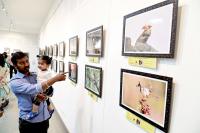Visitors looking displayed photos during the "Photo Habba 2024" photos exhibition at Chitrakala Parishat, in Bengaluru on Saturday 24th February 2024