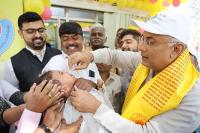 Health and Family Welfare Minister Dinesh Gundu rao administering the pulse polio drops as part of the National Pulse Polio immunization program, in Bengaluru on Sunday 3rd March 2024