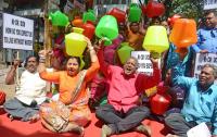 Actress and BJP leader Tara and Members of Bharathi Nagar Residents Forum protest against the governments failure to provide drinking water at Cox town, in Bengaluru on Thursday 7th March 2024