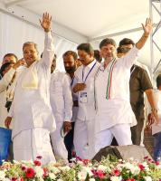 | Event Details: | CM Siddaramaiah with DCM DK Shivakumar, Ministers KH Muniyappa, Byrathi Suresh, Karnataka Congress Incharger Randeeo Surjeewala and others during the inauguration and foundation stone laying and Guarantee Beneficiaries Conference of Government Development Works at Devanahalli, in Devanahalli on Monday 11th March 2024 |