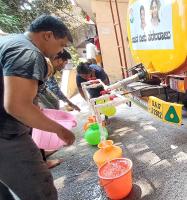 People filling water from the water tanker, at Rajarajeshwari Nagar assembly constituency due to the water crisis, in Bengaluru on Wednesday 13th March 2024
