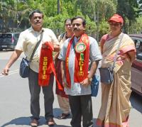 SUCI Lok Sabha candidate from Bangalore central comrade HP Shivaprakash arriving to file his nominations for the Lok Sabha elections, in Bengaluru on Thursday 28th March 2024