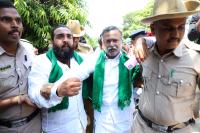 Farmers being detained by police personnel during their protest against Central BJP government, at Kempegowda Statue, near BBMP, in Bengaluru on Wednesday 24th April 2024
