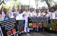 Members of Bengaluru City Youth Congress protest against BJP leader and Advocate Devraje Gowda for allegedly involving DCM D K Shivakumar in the pen drive sex scandal at Congress Bhavan, in Bengaluru on Tuesday 7th May 2024