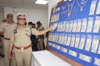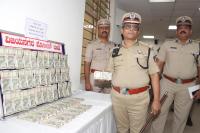 Police Commissioner B Dayananda inspects the seized cash by Vijayanagara Police personnel during a property parade press conference at Police Commissioner Office, in Bengaluru on Tuesday 14th May 2024