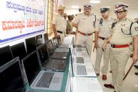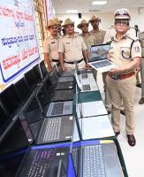 Police Commissioner B Dayananda inspects the recovered smart phones and laptops during the property parade press conference at Police Commissioner office, in Bengaluru on Tuesday 21st May 2024
