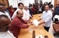 Basavaraj Bommai, submitting his resignation to Speaker UT Khader after being elected for Member of Parliament, in Bengaluru on Saturday 15th June 2024