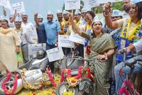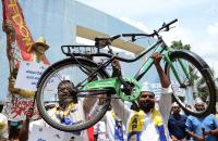 Members of Aam Aadmi Party protesting against State Congress government for hike of fuel price in the Karnataka state, in Bengaluru on Tuesday 18th June 2024