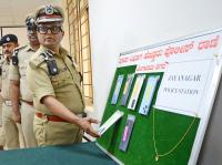 Bengaluru City Police Commissioner B Dayananda inspects the recovered smartphones during a press conference on property parade at Commissioner of Police office , in Bengaluru on Tuesday 18th June 2024