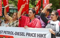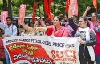Members of SUCI protesting against State Congress government hike in fuel price in the Karnataka state, in Bengaluru on Wednesday 19th June 2024