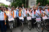 | Event Details: | BJP state President BY Vijayendra with BJP leaders Ashwath Narayan, CT Ravi and others riding bicycles during their protest against State Congress government for hike of fuel price in the Karnataka state, in Bengaluru on Thursday 20th June 2024 |