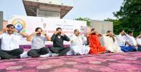 Chief Minister Siddaramaiah participated in the 10th International Yoga Day celebrations at Jindal Steel Plant in Toranagallu in Ballari district on Friday 21st June 2024