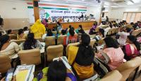KPCC President, DCM DK Shivakumar with Senior women Congress leaders during a meeting at KPCC office, in Bengaluru on Saturday 6th July 2024
