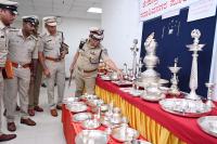 Police commissioner B Dayananda along with police officials during the property parade of silver ornaments and other items worth 26 lakhs at police commissioners office, in Bengaluru on Tuesday 16th July 2024