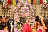 Devotees offering pooja on the occasion of "Guru Poornima" festival, in Bengaluru on Sunday 21st July 2024