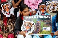 More than 250 school children celebrated World Tiger Day by donning paper masks resembling the face of a tiger as part of a tiger conservation campaign, in Bengaluru on Monday 29th July 2024