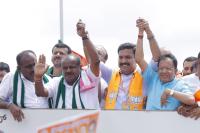 | Event Details: | Union Minister HD Kumaraswamy with JDS State Youth President Nikhil Kumarswamy and BJP State President BY Vijayendra during the BJP and JDS alliance Mysuru Chalo Padayatra to protest against State Congress government MUDA and Valmiki scams, in Bidadi on Sunday 4th August 2024 |