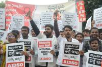 Members of AIDSO Students Organisation with Medical students staged a protest demanding SSP scholarship at Freedom Park, in Bengaluru on Thursday 8th August 2024