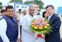 | Event Details: | Chief Executive Officer and President of Foxconn, a Taiwan based Apple phone company, Liu Young way being welcomed by Rural Development and Panchayat Raj and Information Technology Minister Priyank Kharge and Large and Medium Industries Minister MB Patil, in Bengaluru on Friday 16th August 2024 |