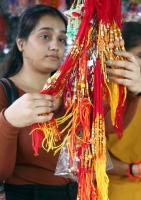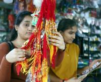 Girls shopping Rakhi threads ahead of Raksha Bandhan festival at Gandhi Bazaar, in Bengaluru on Sunday 18th August 2024