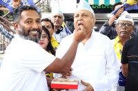 | Event Details: | AAP leaders with State President Mukyamantri Chandru celebrate after Supreme Court grant bail to Delhi Chief Minister and party national convener Arvind Kejriwal in the alleged excise policy case, in Bengaluru on Friday 13th September 2024 |