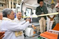 Chief Minister of Karnataka Siddaramaiah with Health and Family Welfare Minister Dinesh Gundu Rao during the launch of new Ambulance Vehicles at Vidhana Soudha, in Bengaluru on Monday 23rd September 2024