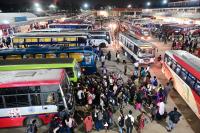 People boarding buses at Majestic Bus stand to reach their native places for festival, in Bengaluru on Thursday 10th October 2024