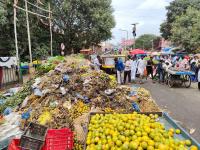 Festival garbage piled up at KR Market, in Bengaluru on Saturday 12th October 2024