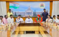 | Event Details: | CM Siddaramaiah with DCM DK Shivakumar, Kudala Sangam Panchamasali Peeth Basavajaya Mrityunjaya Swamiji, Ministers Lakshmi Hebbalkar, Shivraj Thangadagi, MLAs Vinay Kulkarni, Vijay Kashappanavar, community leaders, senior government officials during a meeting on Panchamasali community reservation at Chief Minister Home Office Krishna , in Bengaluru on Friday 18th October 2024 |