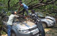 A huge tree uprooted at Netkalappa circle Basavanagudi several cars were damaged due to rain, in Bengaluru on Wednesday 23rd October 2024
