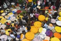 Flower market at KR Market is buzzing with people shopping colorful flowers and decoration materials ahead of Diwali Festival, in Bengaluru on Wednesday 30th October 2024