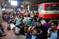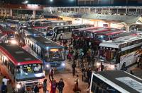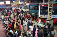 People rush to catch a bus from Majestic Bus Stand for Diwali Festival, in Bengaluru on Wednesday 30th October 2024