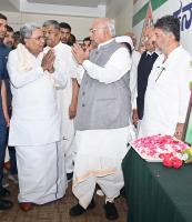 | Event Details: | AICC President Mallikarjuna Kharge with Chief Minister of Karnataka Siddaramaiah, DCM DK Shivakumar, Former Union Minister Veerappa Moily, Minister KH Muniyappa and others offered floral tribute to Former PM Indira Gandhi and Former Deputy PM Sardar Vallabhbhai Patel death and birth anniversary program at KPCC office, in Bengaluru on Thursday 31st October 2024 |