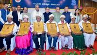 | Event Details: | Chief Minister of Karnataka Siddaramaiah presenting "Ramanashree Sharana Award - 2024" at a program organised by Akhila Bharatha Sharana Sahitya Parishat and Ramanashree Foundation, also seen are Former CM Basavaraj Bommai and others, in Bengaluru on Monday 18th November 2024 |