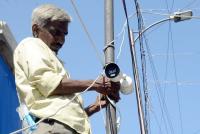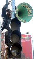 Bengaluru City Police personnel installing the CCTV cameras and speakers at Brigade Road and MG Road junction for the New Year Celebrations, in Bengaluru on Sunday 29th December 2024