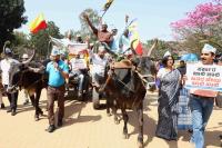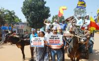 | Event Details: | Members of AAP riding bullock cart during a protest against the State Congress government for increasing the Bus fare, at Freedom park , in Bengaluru on Saturday 4th January 2025 |
