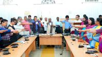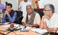 Kannada Development Authority (KDA) Chairman Prof. Purushothama Bilimale with BBMP Commissioner Tushar Girinath and others during a press conference at BBMP office, in Bengaluru on Friday 24th January 2025