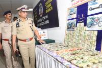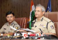 Police Commissioner B Dayananda inspects during the press conference on property parade