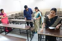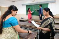 Teachers and staff writing exam registration numbers in classrooms at Seshadripuram College in preparation for 2nd PUC exams, in Bengaluru on Friday 28th February 2024