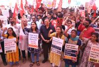 | Event Details: | Members of AIDSO (All India Democratic Students Organisation) with Former Lokayukta of Karnataka N Santosh Hegde staged a protest to condemn the state government decision to close 6,000 government schools in the name of integration at Freedom Park, in Bengaluru on Saturday 1st March 2025 |