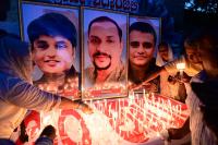 Members of National Students Union of India and Karnataka Congress leaders participated in a candle light vigil against Pahalgam terror attack at Freedom Park, in Bengaluru on Friday 25th April 2025