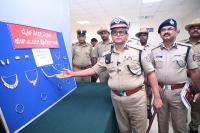 Police Commissioner B Dayananda inspects the recovered jewels during the press conference on property parade at Police Commissioner Office, in Bengaluru on Wednesday 28th May 2025