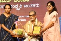 Senior Writer Dr. Rahamath Tarikere felicitated during the Maneyangaladi Matukate program organized by Kannada and Culture Dept. at Kannada Bhavan, in Bengaluru on Saturday 21st June 2025